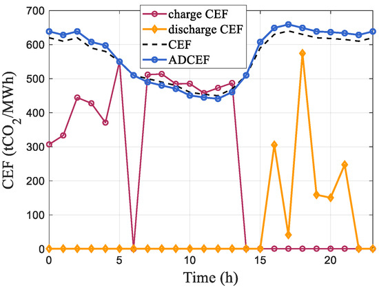 This paper addresses the spatiotemporal mismatch between static TOU pricing and real-time carbon intensity in high-RES ADNs by proposing an ADCEF strategy. While this approach draws on the theoretical basis of virtual carbon storage established by Hua et al. [26], it shifts the application from peer-to-peer trading to a DSO-managed incentive signal, uniquely integrating a negative-carbon mechanism to maximize surplus renewable absorption. Under this strategy, ADCEF transforms the CEF from a fixed metric into an active, DSO-managed variable, leveraging ES for carbon time-shifting. By constructing a virtual carbon pool, ES extends beyond energy arbitrage to store and release carbon responsibilities, enabling precise emission trajectory planning. A key innovation is the negative-carbon concept, which quantifies the environmental value of absorbing curtailed RES—equivalent to displacing high-carbon grid power—thus assigning negative CEF values during surplus periods. This approach generates dynamic signals that reflect real-time RES status, guiding flexible resources toward 100% green consumption without increasing user costs.