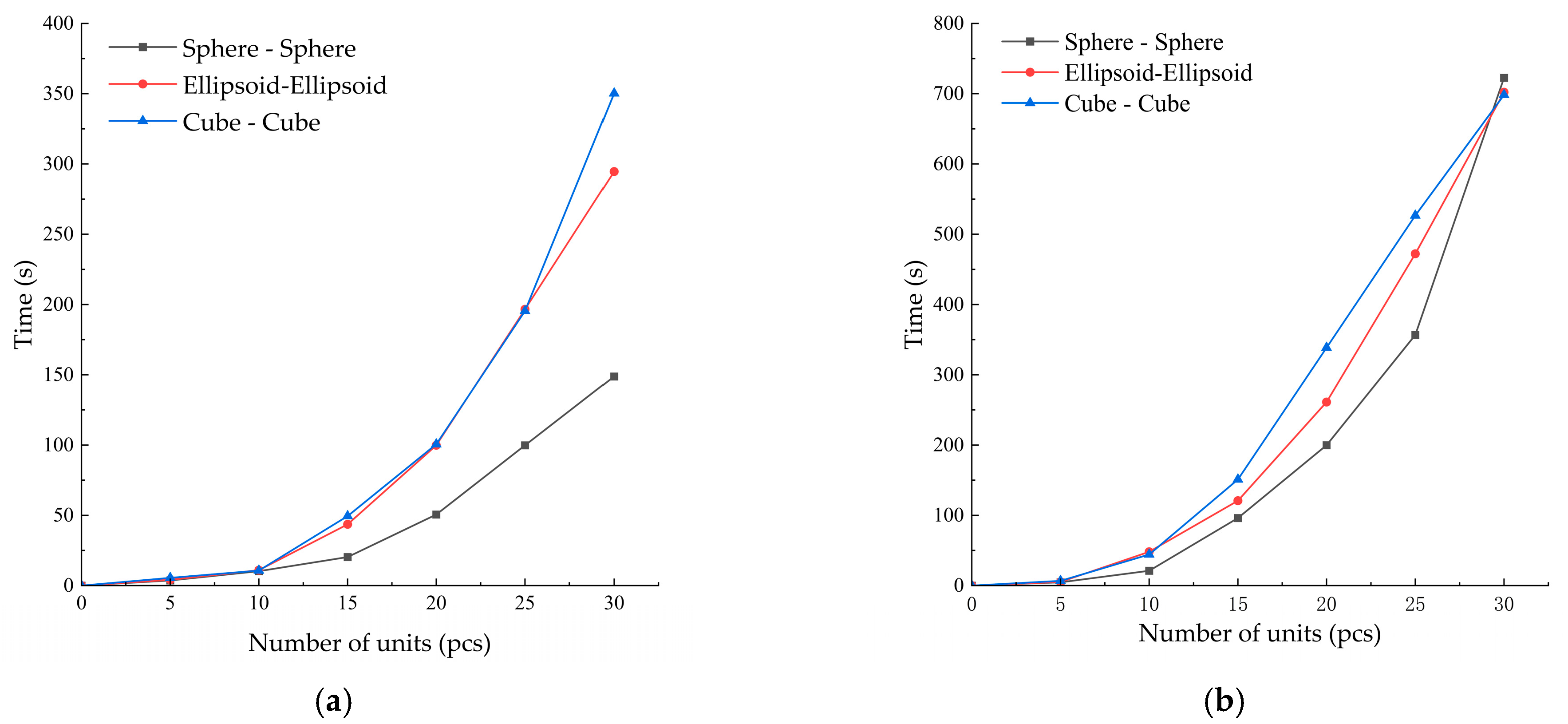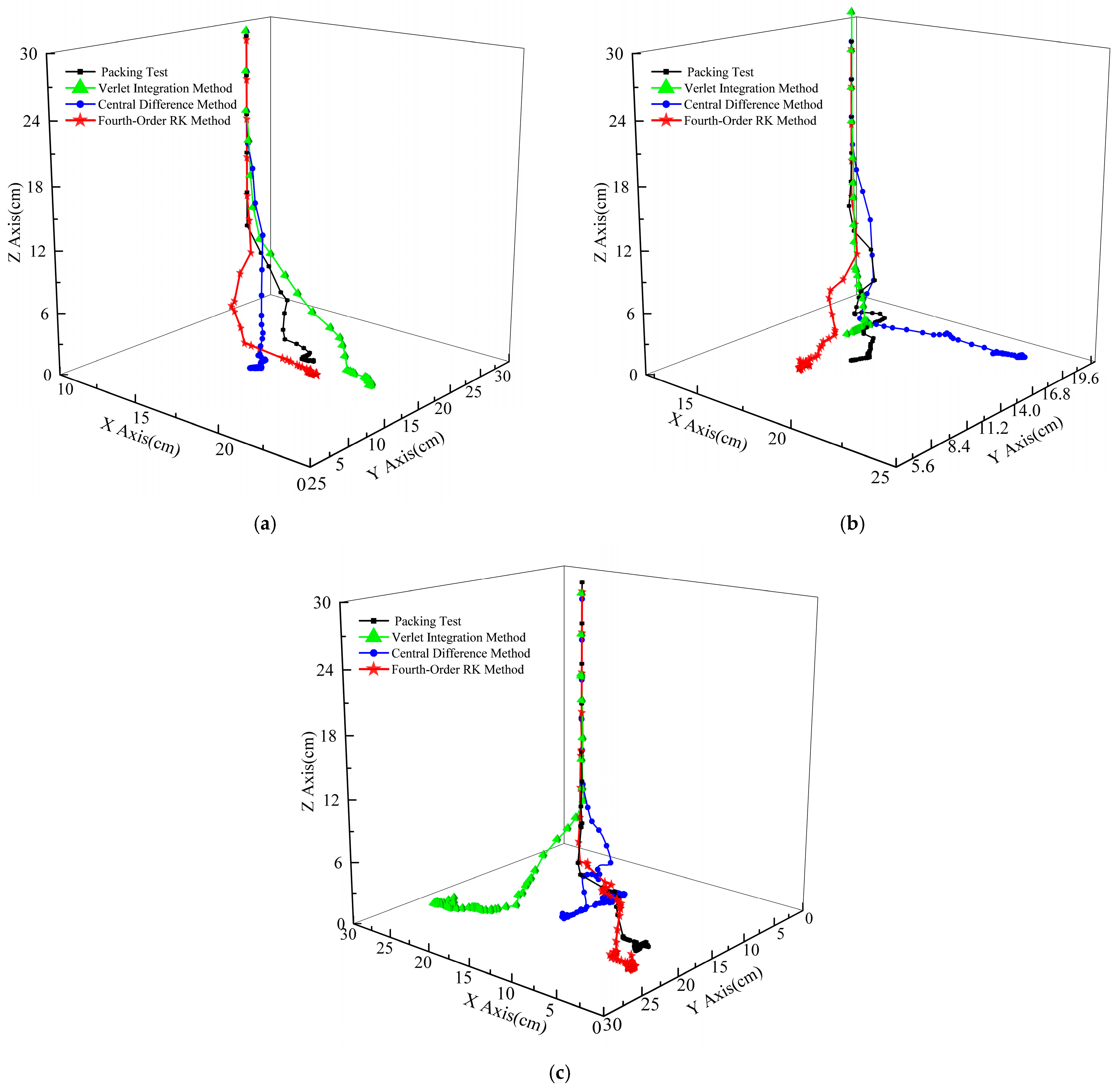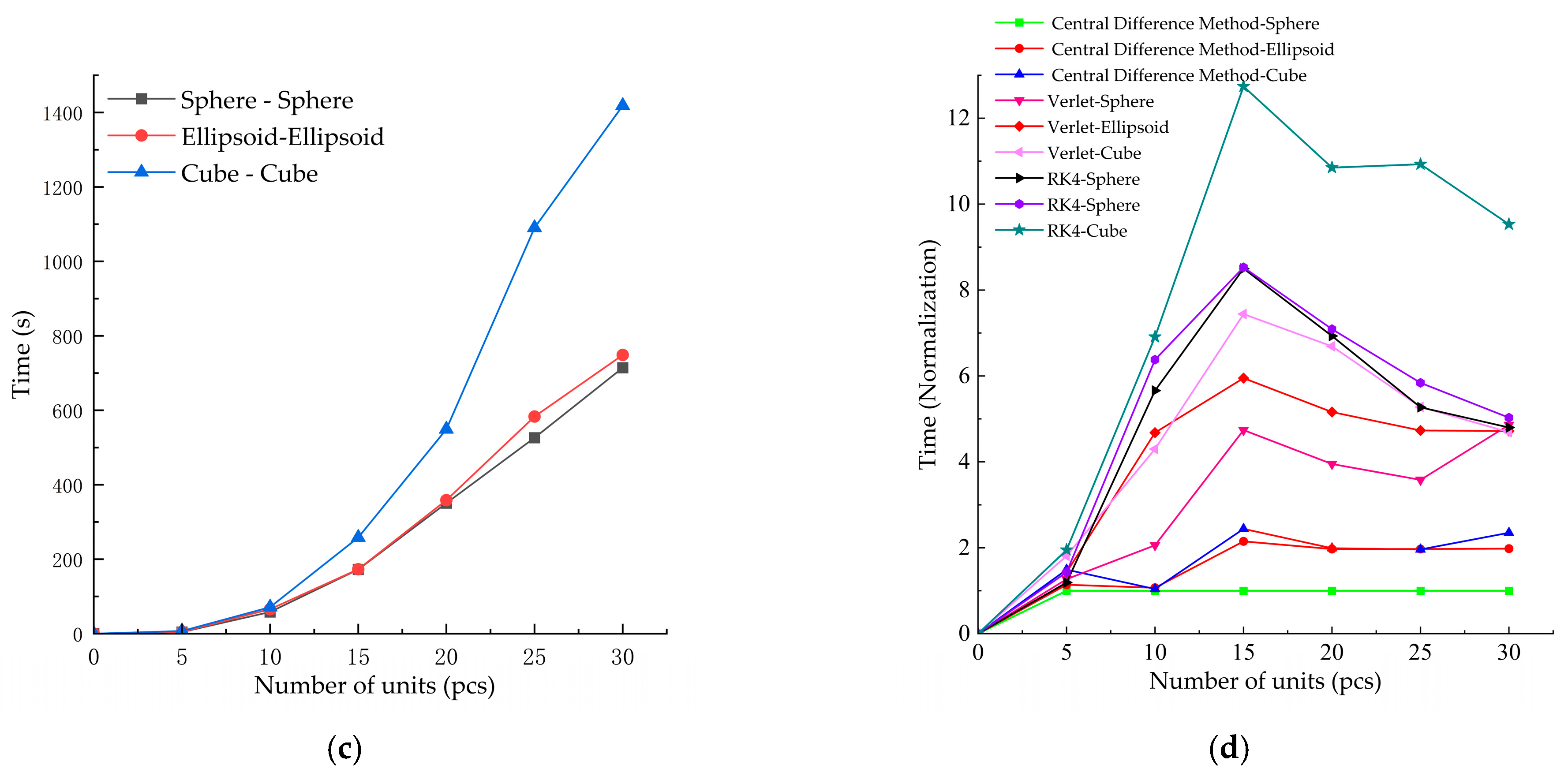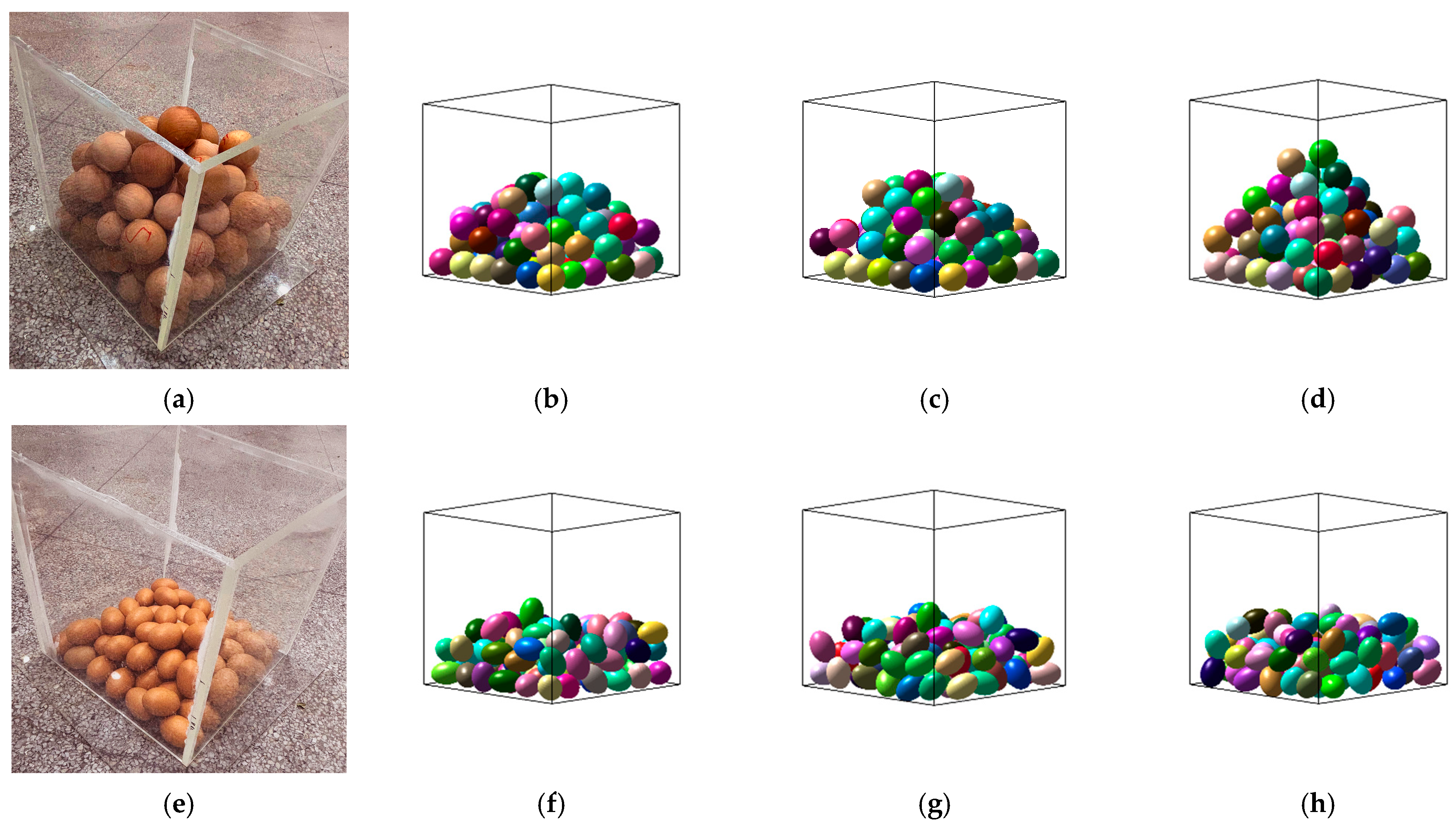 - The fourth-order Runge–Kutta method exhibits the highest accuracy, with a packing height error of only 5.72% for spheres. However, it is the least efficient, requiring approximately 2–3 times the computational time of the central difference method. It is recommended for high-precision simulations and complex contact scenarios.