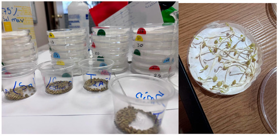 Petri dishes with lentil seeds and germinated ones.