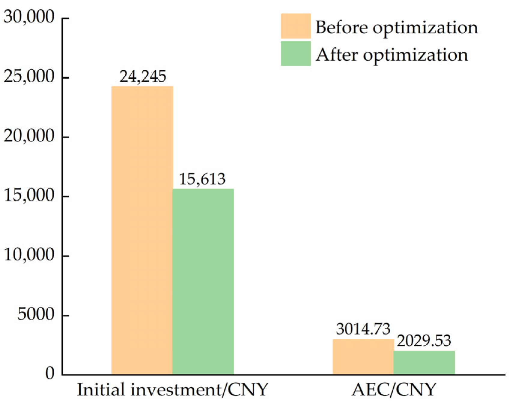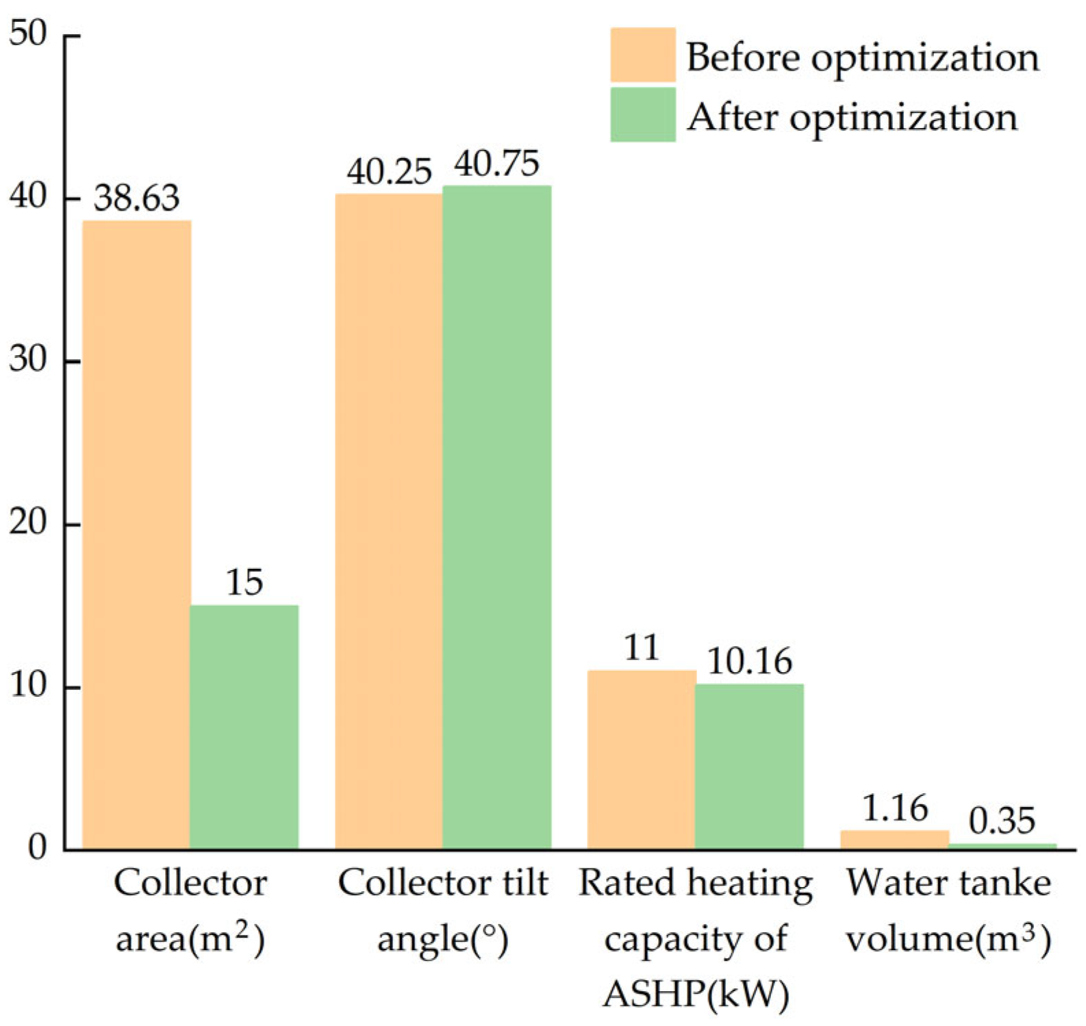 - After optimization, the 35.60% reduction in initial investment brings the system within reach of rural households, while the 32.68% reduction in AEC particularly enhances long-term affordability. These improvements directly address the primary barrier of economic accessibility, transforming the SASHP system from a technical possibility into a financially viable solution for rural households, providing a quantitative decision-making basis for such trade-offs, representing a crucial pathway in renewable heating technology adoption for rural areas.