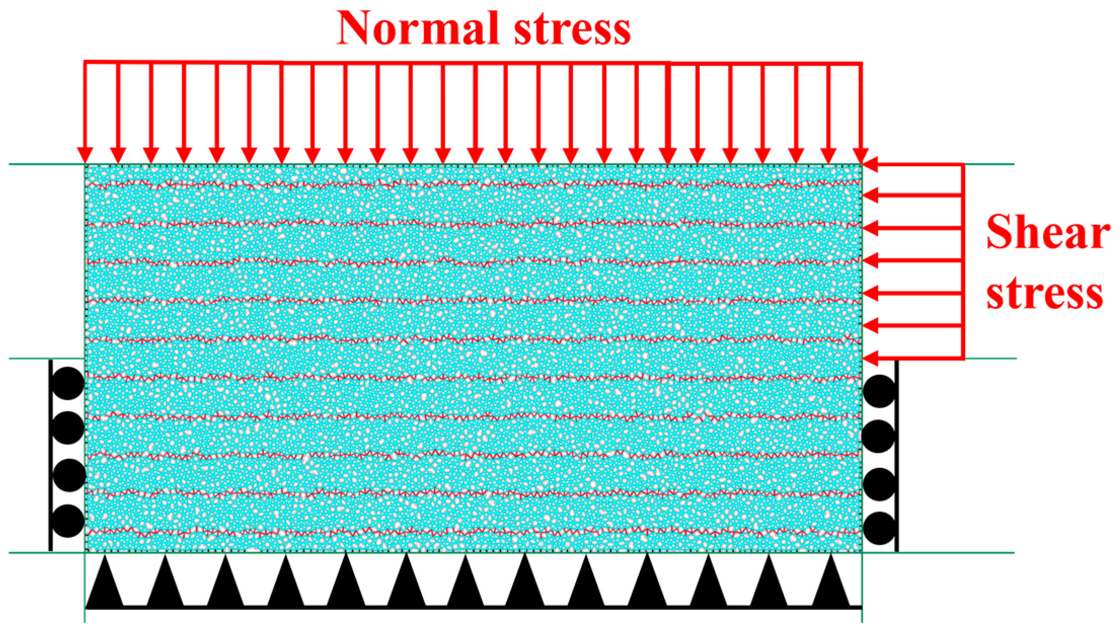 20] conducted a series of direct shear tests on shale with different BAs based on PFC. They investigated the evolution and distribution of microcracks, the three-dimensional anisotropy of shear strength parameters, and the influence of bedding plane stiffness. Song et al. [
