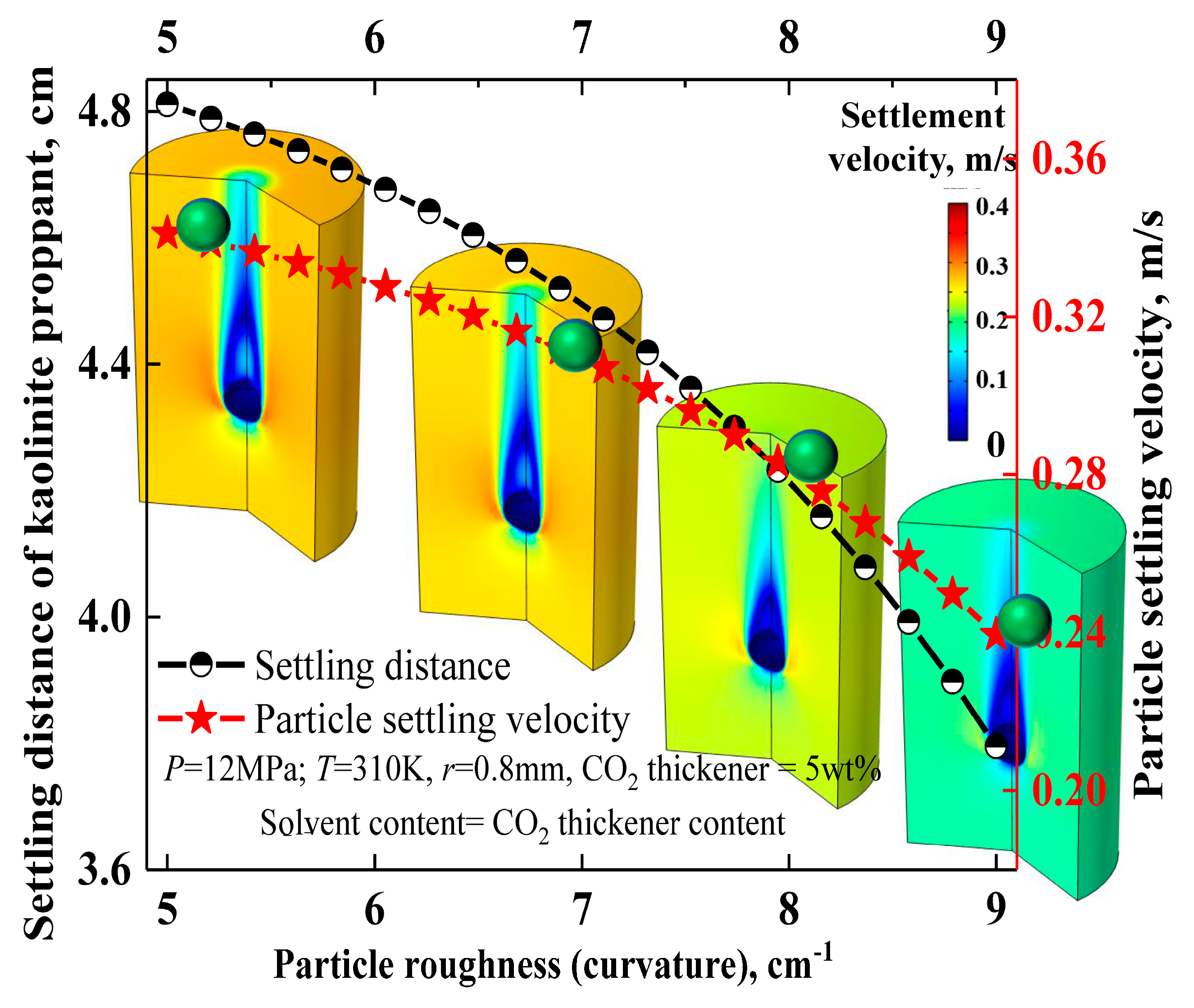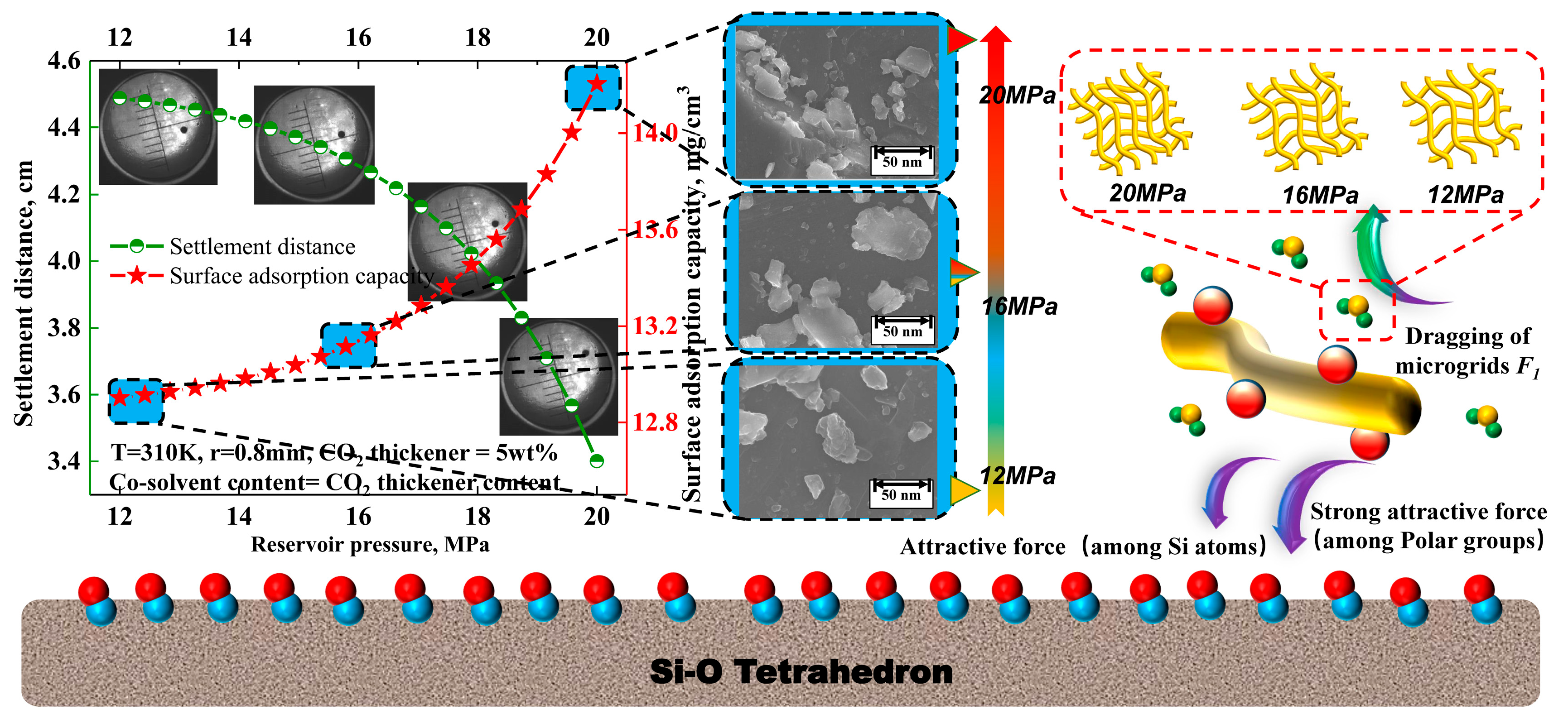 - Li, Q.; Li, Q.; Wang, F.; Xu, N.; Wang, Y.; Bai, B. Settling behavior and mechanism analysis of kaolinite as a fracture proppant of hydrocarbon reservoirs in CO2 fracturing fluid. Colloids Surf. A Physicochem. Eng. Asp. 2025, 724, 137463. [Google Scholar] [CrossRef]