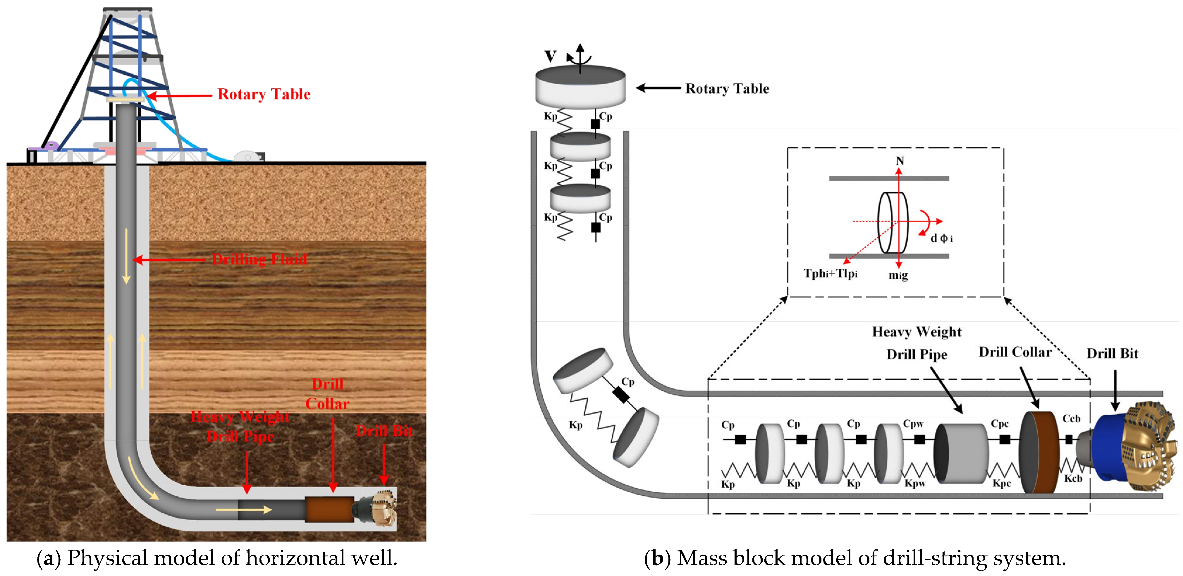 - Jia, X.; Zhong, X.; Liu, S.; Ji, Z.H. Analysis of stick-slip vibration characteristics of deep well drill string. Oil Field Equip. 2018, 47, 1–7. [Google Scholar]