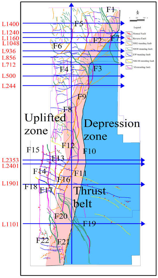 - Liu, J.; Ding, W.; Dai, J.; Wu, Z.; Yang, H. Quantitative Prediction of Lower Order Faults Based on the Finite Element Method: A Case Study of the M35 Fault Block in the Western Hanliu Fault Zone in the Gaoyou Sag, East China. Tectonics 2018, 37, 3479–3499. [Google Scholar] [CrossRef]