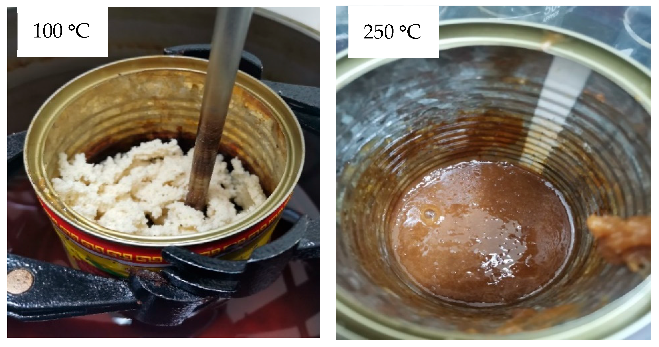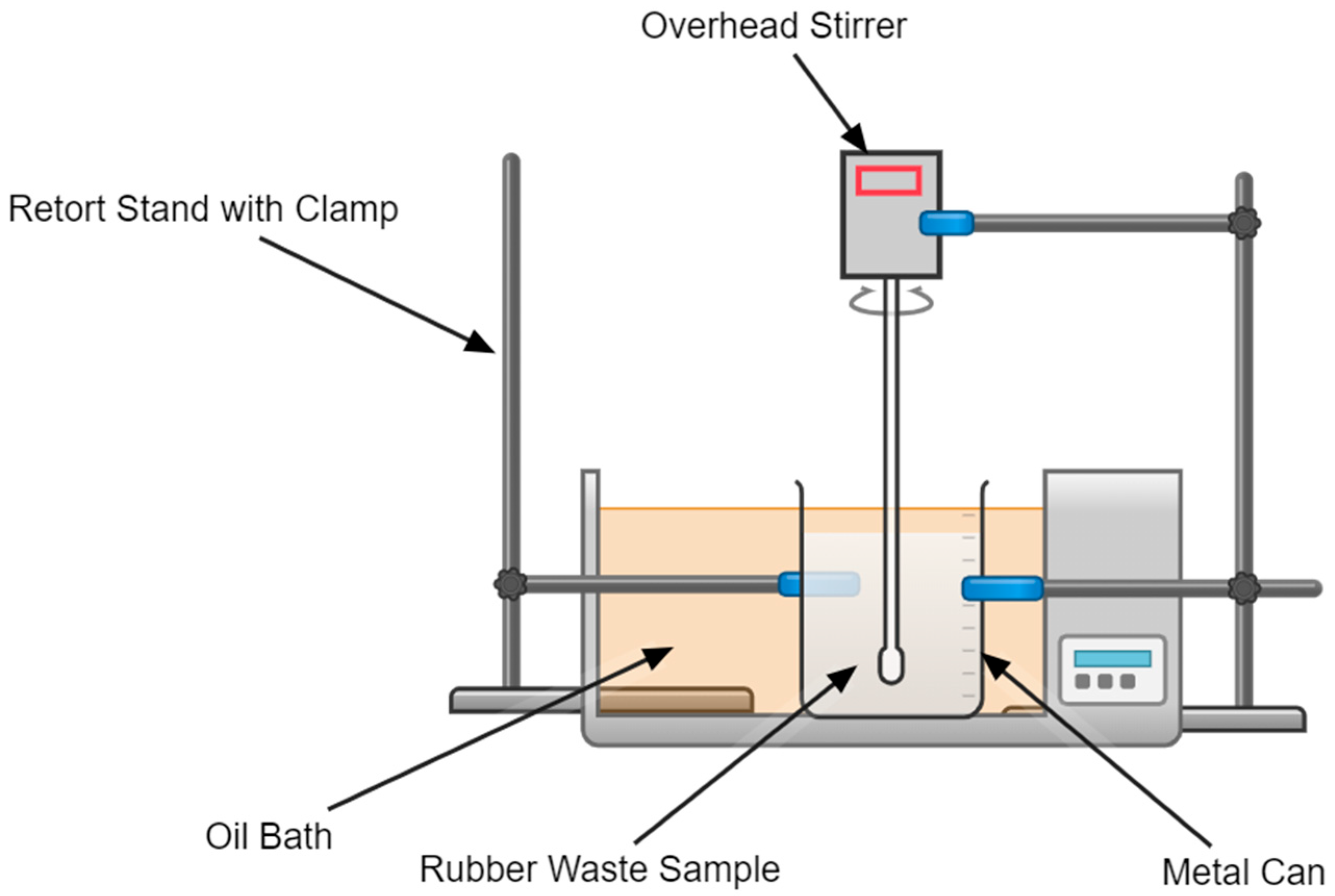 3.2. Pilot-Scale Devulcanization: Modification of Waste Rubber Tank