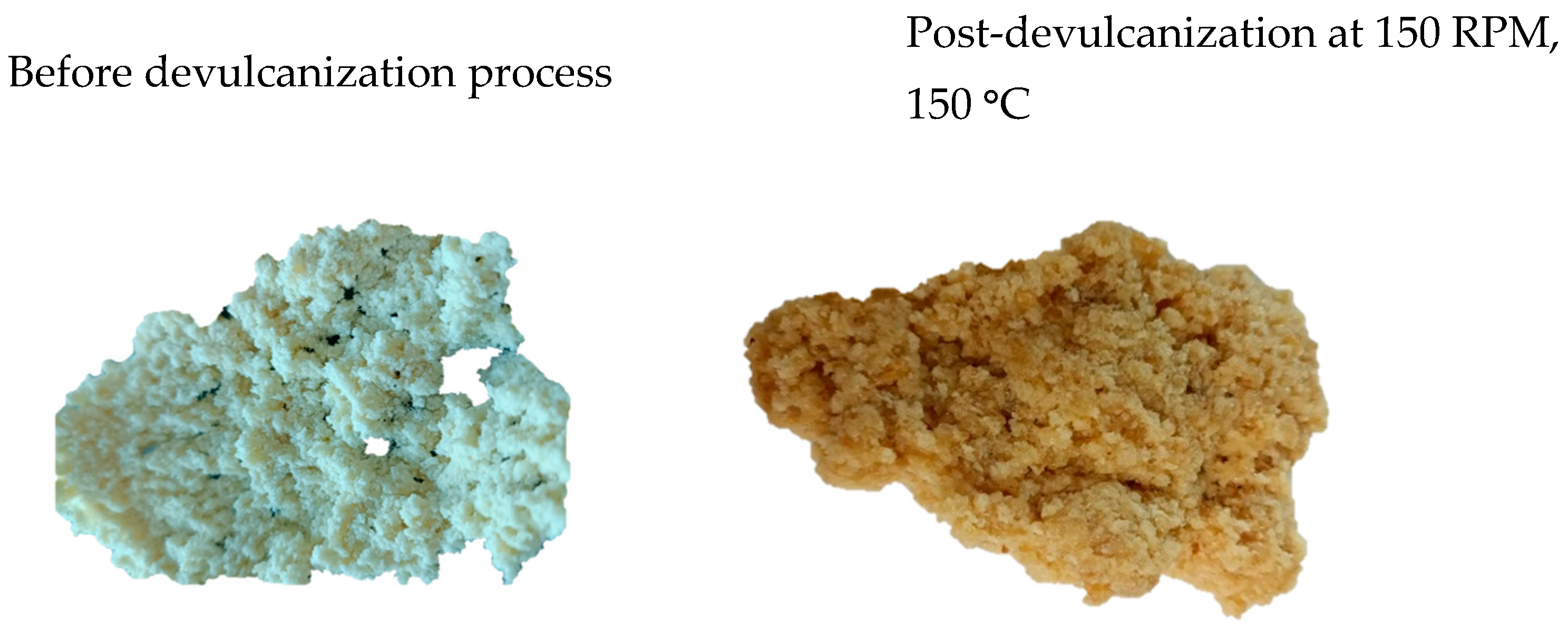 2.2.2. Devulcanization of Rubber in Modified-Waste Rubber Machine