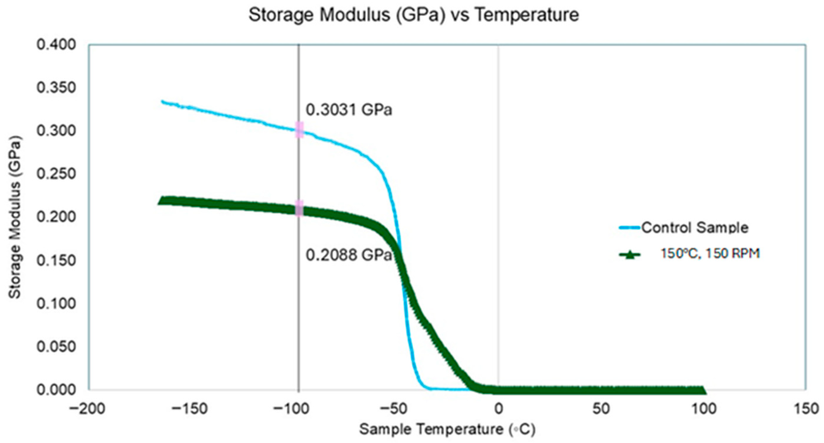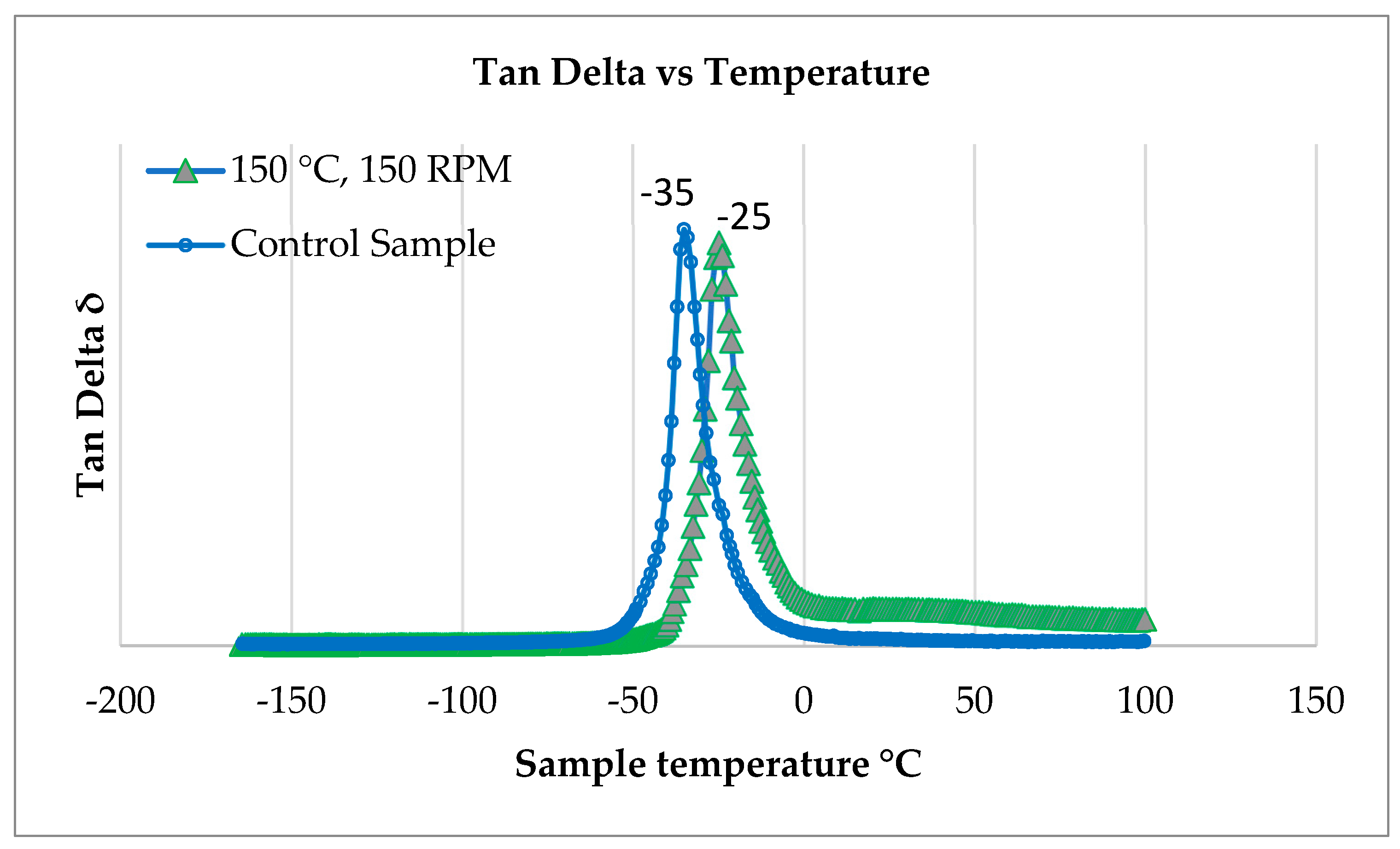 3.2.5. Dynamics Mechanical Properties of Devulcanized Rubber
