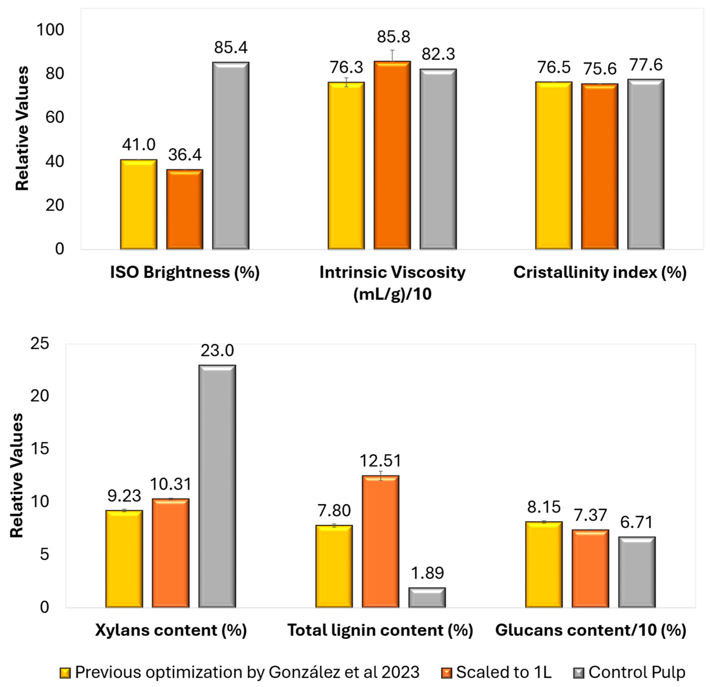 - Ehman, N.; Rodriguez Rivero, G.; Area, M.C.; Felissia, F. Dissolving Pulps by Oxidation of the Cellulosic Fraction of Lignocellulosic Waste. Cellul. Chem. Technol. 2017, 51, 864–870. [Google Scholar]