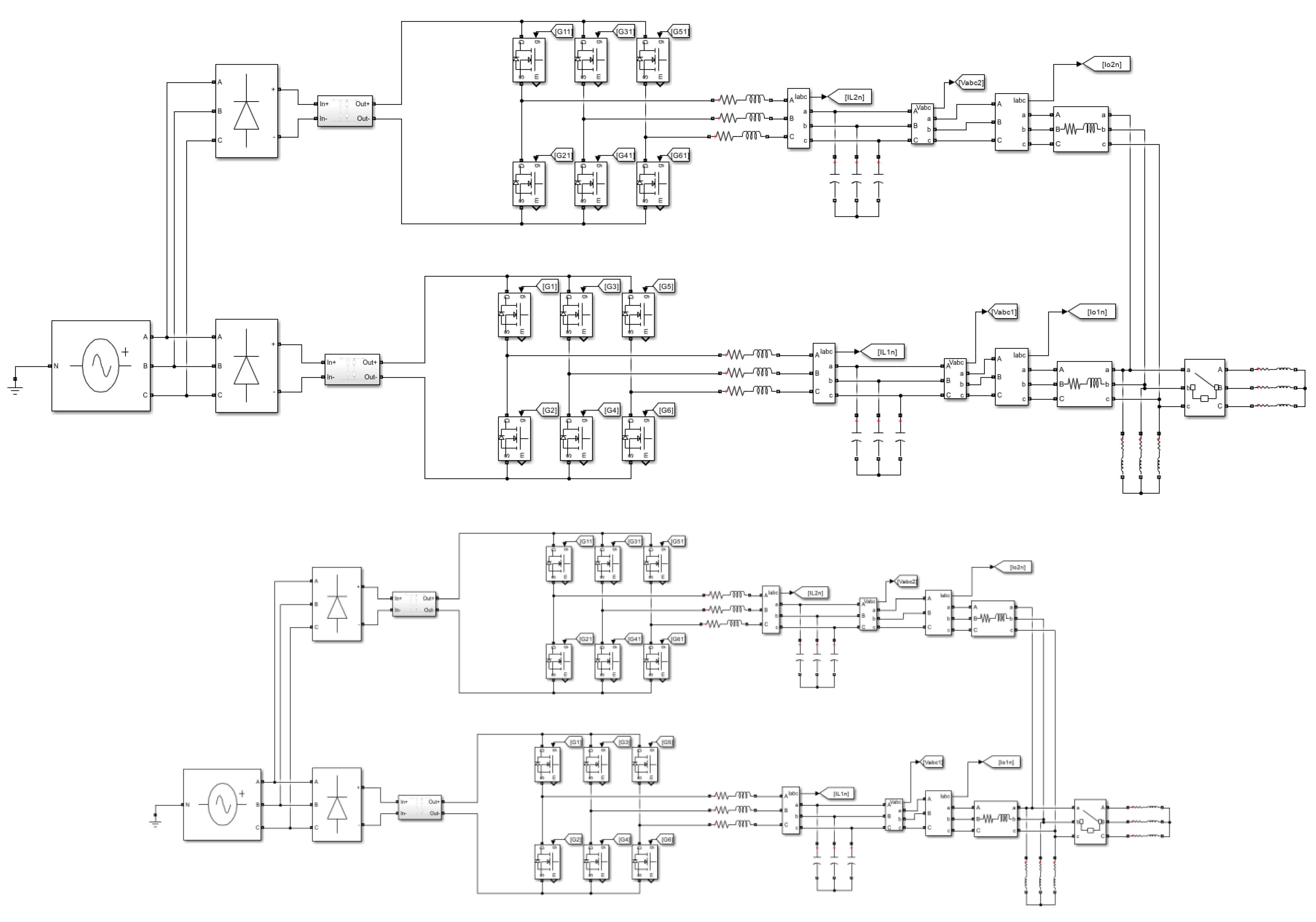 Figure 11 shows the parallel circuit diagram of the three-phase inverter in MATLAB/Simulink, so all methods are carried out based on this diagram.