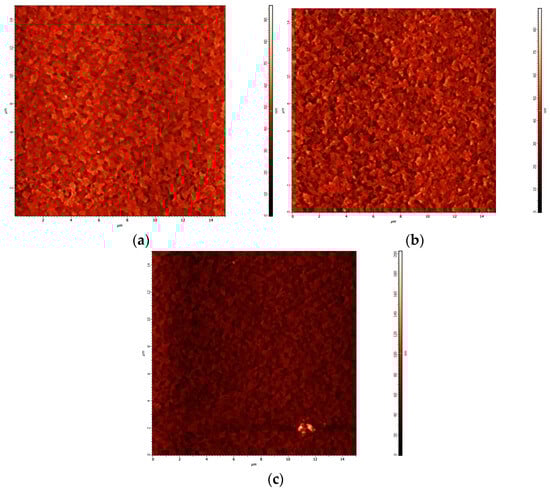 AFM images of V2Ox after annealing at (a) 100 °C, (b) 140 °C, and (c) 180 °C.