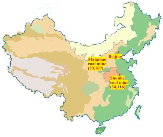 Figure 3. The geographic location of Shunhe Coal Mine and Mataihao Coal Mine in China.