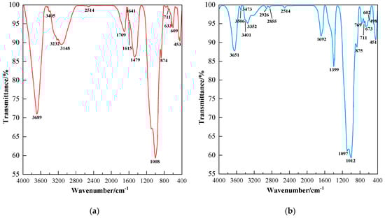 Figure 10. The FT-IR patterns of samples from Mataihao Coal Mine: (a) N425-1 sample; (b) N425-2 sample.