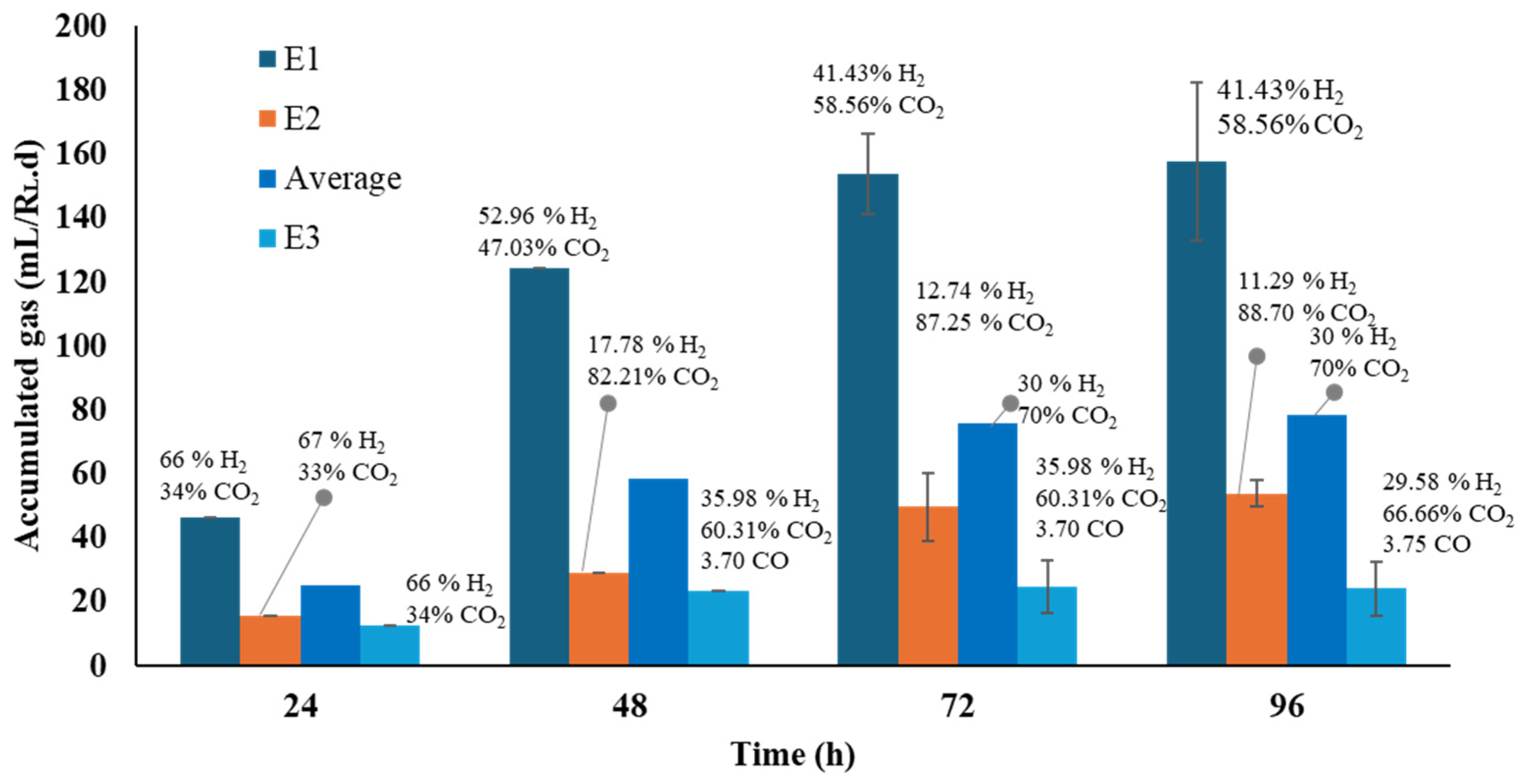 2.4. Dark Fermentation Experiments for Biohydrogen Production