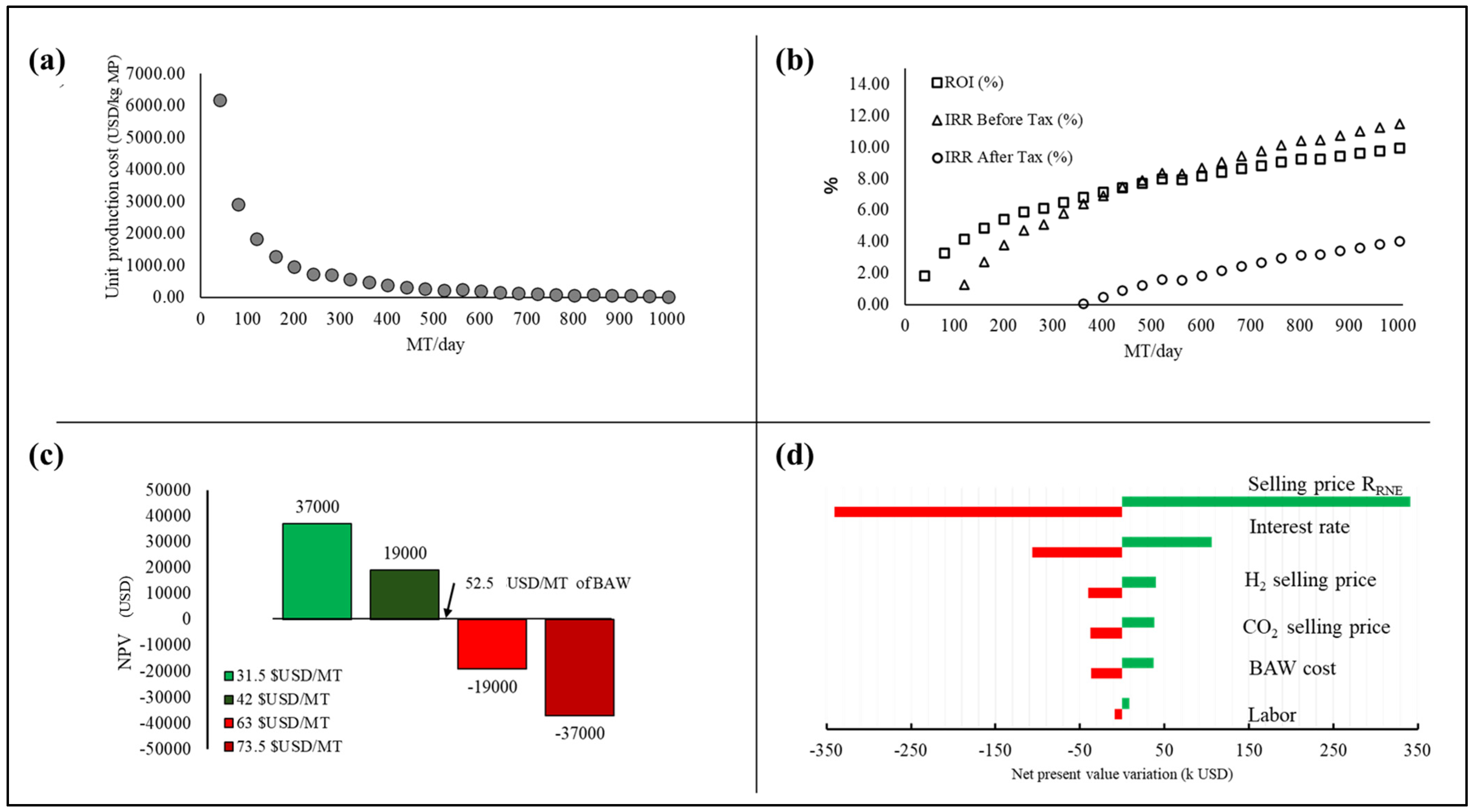 2.6. Tecno-Economic Analysis of Broccoli Biorefineries