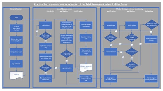 Having introduced practical guidelines on how to implement the R4VR-framework, we now take a look at how the framework can be adopted in medical use cases such as cancer diagnosis based on images. In such settings, ML systems are typically classified as high risk and must comply not only with the EU AI Act but also with sector-specific regulation and institutional governance procedures (e.g., ethics review, data protection rules, and clinical safety management) [35]. Beyond technical compliance, medical applications require adherence to ethical and data protection principles, for example, the General Data Protection Regulation (GDPR) in the EU [36].