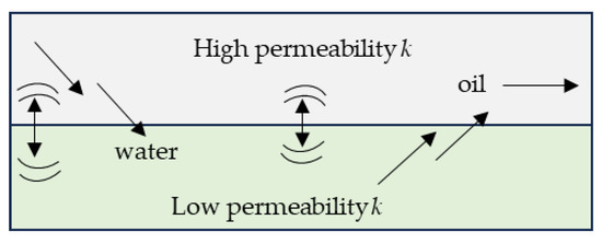 Sandstone reservoirs are a significant type of reservoir characterized by their extensive distribution and abundant reserves. Geological processes such as sedimentation, diagenesis, and tectonic activity play a crucial role in their development, resulting in spatial variability and non-uniform reservoir characteristics [6,7]. A notable feature of sandstone reservoirs is the presence of multiple oil-bearing layers formed during deposition. Variations in depositional environments cause differences in key parameters, such as thickness, porosity, and permeability among these layers, contributing to the reservoir’s vertical heterogeneity. This vertical variability significantly influences fluid distribution and movement within the reservoir, posing challenges for enhanced oil recovery (EOR) techniques, like water flooding.