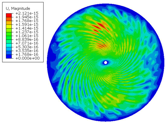 The analysis step of geostress equilibrium is set to be geostatic. The geostress analysis step is generally an implicit analysis process of static force, which simulates the stress distribution in formations not disturbed by the drill bit. Therefore, conditions of the wellbore and far-field boundary displacement need to be set in the analysis step. Figure 8 shows the results after reaching geostress equilibrium, in which the maximum displacement in the model is only 2.12 × 10−15 mm, geostress reaches equilibrium, and boundary conditions are smoothly imposed to the model. This indicates that the initial boundary conditions are effective and feasible in the subsequent analysis.