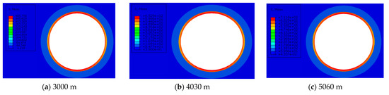 Mises stress nephograms of the casing at different depths.