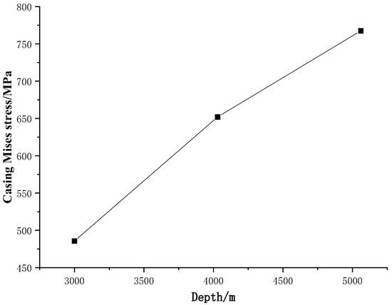 3.2.1. Influence of Burial Depth on Casing Stress