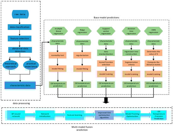 The data-driven multi-model fusion prediction method achieves an accurate prediction of oil temperature by integrating the base model and the secondary prediction model, and the overall process of model construction is shown in Figure 3.