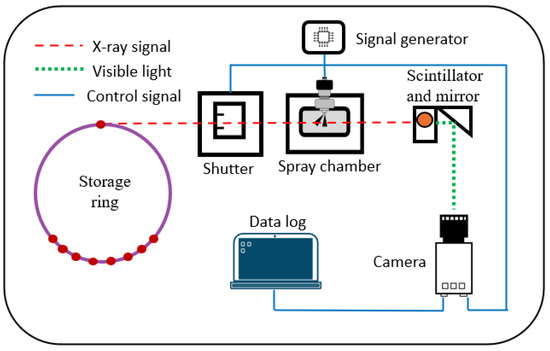 All experiments in this study were conducted at the 7ID-B beamline of the Advanced Photon Source (APS) at Argonne National Laboratory in the United States. The main optical parameters can be found in reference [23]. The spray measurement system built at the 7ID-B beamline is shown in Figure 1. The system mainly includes the following components: X-ray imaging and capture system, signal synchronization and control system, fuel pressurization system, and spray chamber.