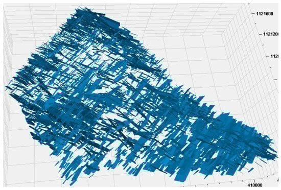A statistical analysis of the correlation between the fracture intensity and seismic attributes indicates a strong correlation with ant-tracking and maximum likelihood attributes. These attributes were therefore used as the constraints to conduct two sets of stochastic simulations of the fracture distribution, resulting in a spatial distribution model of the fracture networks. Using seismic attribute constraints, two sets (NW and NE) of stochastic simulations of the fracture distribution were conducted, resulting in a spatial distribution model of the fracture networks. A DFN model of the fractured basement complex reservoir is shown in Figure 5.
