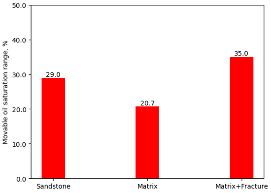 Movable oil saturation range in three different media (sandstone, matrix, and fractured matrix) after gas flooding.