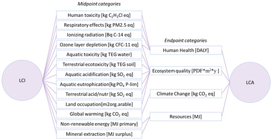 - Jolliet, O.; Margni, M.; Charles, R.; Humbert, S.; Payet, J.; Rebitzer, G.; Rosenbaum, R. IMPACT 2002+: A new life cycle impact assessment methodology. Int. J. Life Cycle Assess. 2003, 8, 324–330. [Google Scholar] [CrossRef]