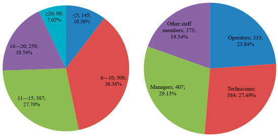 The questionnaires were sent to managers, technicians, and frontline operators. A total of 1500 paper questionnaires were distributed, and 1481 were recovered, with a recovery rate of 98.73%. Discounting missing questions and invalid questionnaires that do not meet the requirements, the total number of valid questionnaires was 1397, with an effective questionnaire rate of 93.13%.
