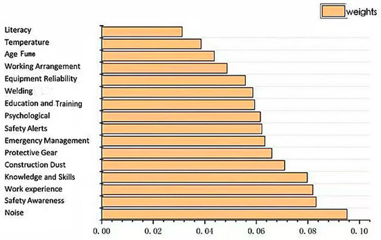 Primary variables: X1 is age; X2 is working age; X3 is education level; X4 is attendance; X5 is psychological condition; X6 is knowledge and skills; X7 is safety awareness; X8 is noise; X9 is temperature; X10 is the concentration of welding fume; X11 is the concentration of construction dust; X12 is supervision and inspection; X13 is work arrangement; X14 is safety education; X15 is emergency management; X16 is safety warnings; X17 for equipment reliability; and X18 for protective gear.