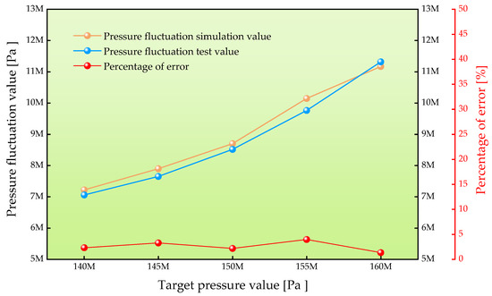 Different target rail pressure values (140 MPa, 145 MPa, 150 MPa, 155 MPa, and 160 MPa) are set to compare the errors of simulation and test values to verify the feasibility of the model.