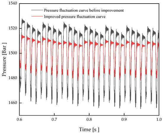 Pressure fluctuation curve in the common rail pipe before and after optimization.