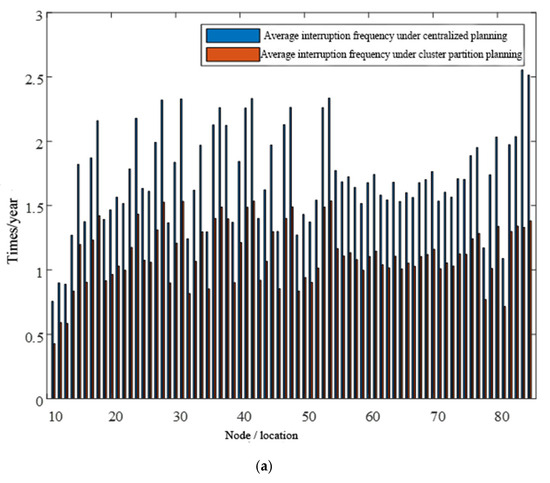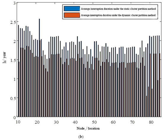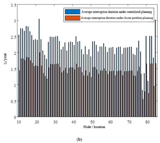 where λj is the failure rate (average number of outages) of the node j, rj is the average outage time of the failure of the node j, αk is the probability of cluster islanding, which physically represents the probability that the PV and energy storage within cluster k can meet load demand when the cluster enters islanded operation, ek is the failure rate of the circuit breaker, ej is the malfunction rate of element j, ep is the malfunction rate of the PV, Nn,k is the count of nodes in cluster k, Np,k is the total of PV nodes within cluster k, is the failure recovery time of element I, is the failure recovery time of PV nodes, rbreak is the operating time of the isolator, ek1 is the failure rate of the isolator, and μj represents the average outage length of the failure of the node j.