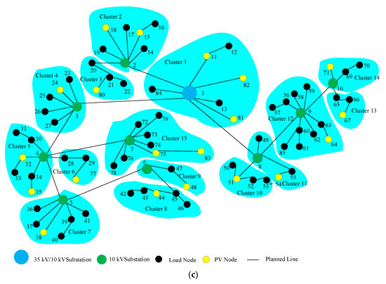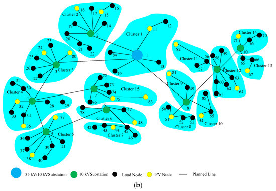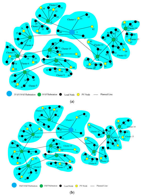 In recent years, photovoltaic (PV) generation systems have rapidly expanded across China. The volatility and intermittency of PV systems have significantly affected load balancing, voltage regulation, and frequency stability within distribution networks [1]. Optimizing DN planning has become crucial for achieving efficient and cost-effective operations, especially with the growing scale of distributed PV systems [2]. Cluster planning can decompose centralized optimization problems into simpler subproblems for individual clusters [3].