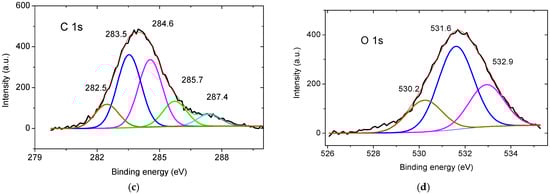 Five peaks were deconvoluted from the C 1s (Figure 8c) region that can be assigned to the organics interacting with O, Cl, and N in the residual material.
