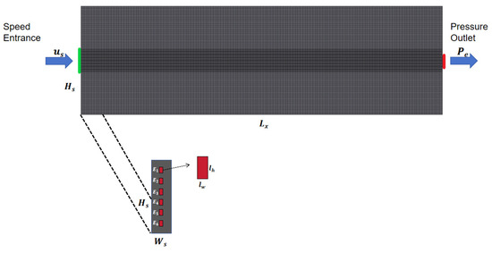 The left boundary of the model in this paper is assumed to be the inlet (see Figure 1). The initial velocities of the liquid phase and the particle phase at the inlet are assumed to be constants, as well as the volume fraction of the particle phase. No-slip walls are assumed at the top and bottom boundaries.