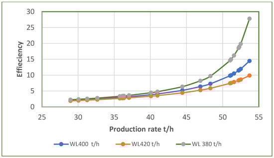 In the brown stock washing process, ensuring the thorough removal of cooking chemicals during the washing process is critical. However, the efficiency of washing is typically evaluated based on two key parameters: wash loss and dilution factor. A lower dilution factor reduces energy consumption and contributes to cost savings in operations. On the other hand, a higher dilution factor results in a cleaner pulp output, which is essential for maintaining product quality standards. This relationship between the dilution factor and process efficiency is clearly illustrated in Figure 21, where it can be observed that as the production rate increases, process efficiency also rises. However, an increased wash liquor flow rate leads to decreased process efficiency. Finding the right balance between these parameters is imperative to optimize washing efficiency and achieve desired outcomes.