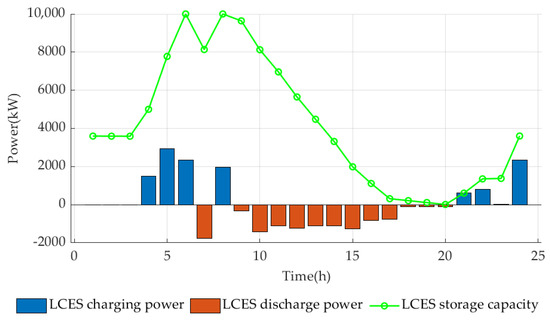 Figure 7. The LCES storage and discharge power and storage capacity are shown in