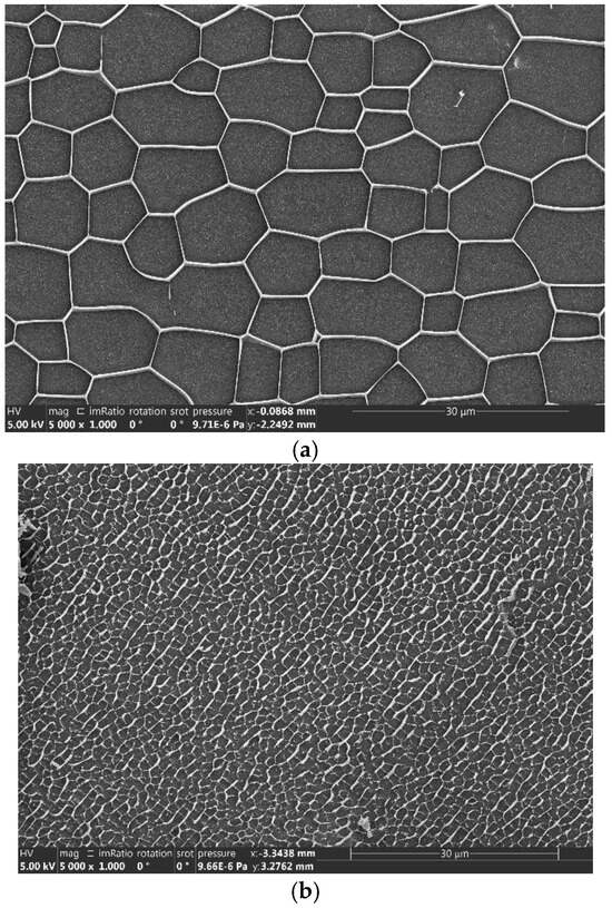 In the research field of the correlation between material properties and structures, in-depth analysis of the microstructural evolution of polymers under different conditions is crucial for expanding their engineering applications. Based on the experimental results shown in Figure 7, when 4% AM monomer was added to the polymer system, and the polymer was placed in an environment of 210 °C for 3 h, a comparison of before and after conditioning showed that its structure exhibited certain stability characteristics. In both stages, the polymer presented a typical dense network structure.
