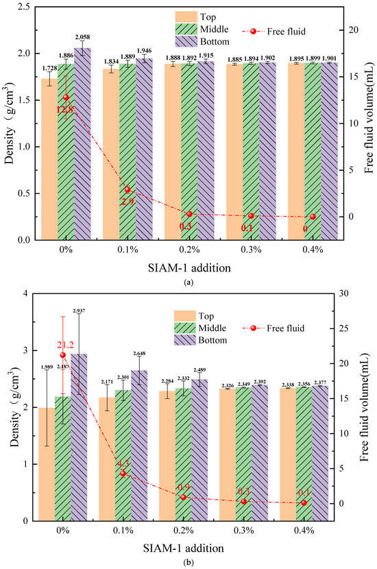 Effect of SIAM-1 on high-temperature stability of cement slurry: (a) conventional-density cement and (b) high-density cement.