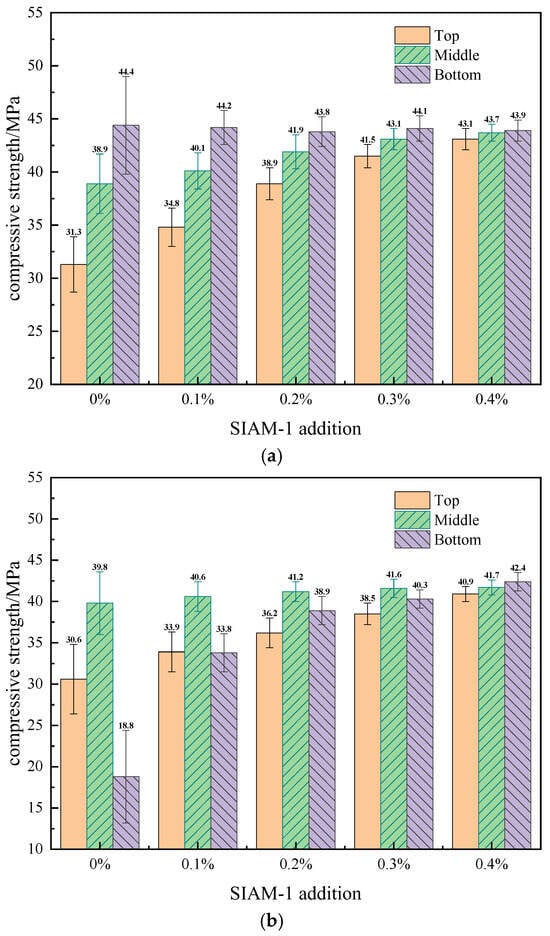 Effect of SIAM-1 on compressive strength of cement slurry: (a) conventional-density cement and (b) high-density cement.