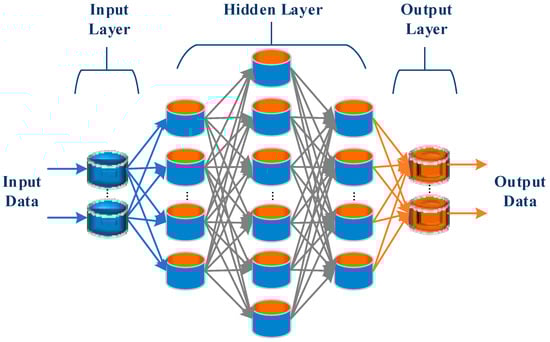 Figure 4 illustrates the core elements of the NN system used in this study. These included the input layer, hidden layer, and output layer. The input layer serves as the starting point, receiving the input data. The data are then processed in the hidden layer, which acts as an intermediary, applying weights to the input data to uncover complex patterns. Finally, the output layer provides the predictions according to the input data.