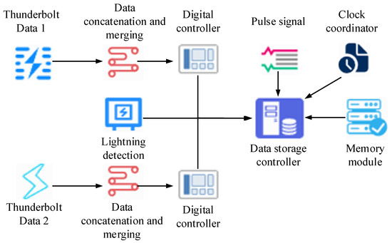 In the field of lightning detection, the collected lightning data serve as the signal source data. To effectively analyze lightning detection, the study applies the DOA algorithm to the analysis of lightning signal digitization. This makes it possible to accurately estimate the arrival direction of the lightning signal source. Before the digitization analysis, the lightning signal data must be collected effectively [12]. Through the summary of related research and practical application analysis and summary, the study will be the acquisition process of lightning signal data using the Beidou satellite positioning system for marking. Marking is a prerequisite for obtaining reliable data. The overall data acquisition process is as follows: first of all, it is necessary to carry out data series parallelism for multiple data streams and to determine whether lightning is generated by one of the data. Then, according to the lightning signal, the data frequency conversion is operated, and the signal after frequency conversion is marked. When each signal marking is completed, it is necessary to store it once, and then the memory module will extract the lightning data from the external memory module. After the extraction of the lightning data are completed, the data can be transferred to the corresponding relationship analysis matrix, thus forming the data analysis module. The schematic diagram of the whole process is shown in Figure 1.