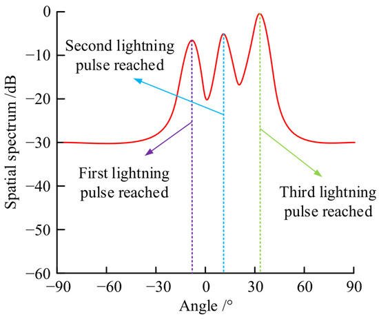In Equation (1), denotes the signal timing position and denotes the distance between neighboring timing signals. denotes the incidence angle of the signal, and denotes the value of the timing signal coefficient. denotes the number of time series signals. After completing the definition of the signal time series position, when there is a delay period between the lightning data, data preprocessing can be utilized to obtain an estimate of the angle of incidence, which can be defined using Equation (2) [13].