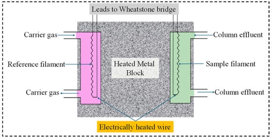 Gas chromatography (GC) analyzers are sophisticated instruments used to separate and measure the components of a gas mixture. They consist of several key components: an injector, a chromatographic column, a carrier gas system, and a detector, all housed in a controlled environment, as illustrated in Figure 11 [29]. The process begins with the injection of a gas sample into the chromatographic column. As the sample travels through the column, its components are separated based on their interactions with the column material. The separated components are then detected and quantified by the detector. This method is highly accurate and can detect very low concentrations of gases, making it suitable for analyzing complex mixtures. However, GC analyzers are expensive, require skilled operation, and are bulkier compared with other types of gas sensors.