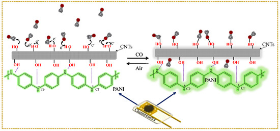 - Abdulla, S.; Pullithadathil, B. Unidirectional Langmuir–Blodgett-mediated alignment of polyaniline-functionalized multiwalled carbon nanotubes for NH3 gas sensor applications. Langmuir 2020, 36, 11618–11628. [Google Scholar] [CrossRef] [PubMed]