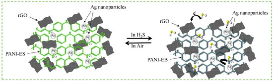 - Saravanan, K.K.; Siva Karthik, P.; Mirtha, P.R.; Balaji, J.; Rajeshkanna, B. A one-pothydrothermal-induced PANI/SnO2 and PANI/SnO2/rGO ternary composites for high-performance chemiresistive-based H2S and NH3 gas sensors. J. Mater. Sci. Mater. Electron. 2020, 31, 8825–8836. [Google Scholar] [CrossRef]