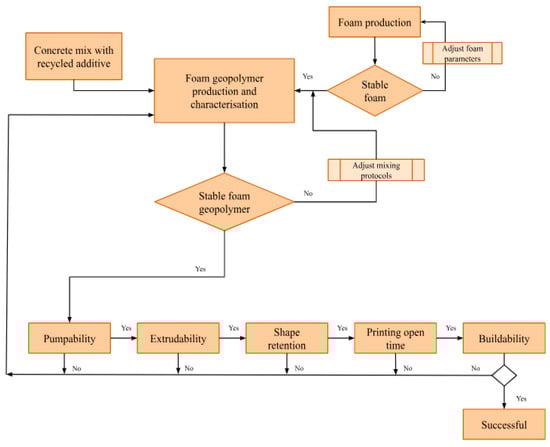 Flowchart of the procedure for developing new mixtures for 3D concrete printing applications.