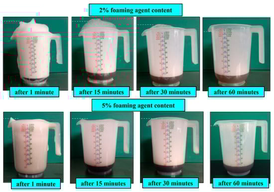 - Hou, L.; Li, J.; Lu, Z.; Niu, Y. Influence of foaming agent on cement and foam concrete. Constr. Build. Mater. 2021, 280, 122399. [Google Scholar] [CrossRef]