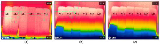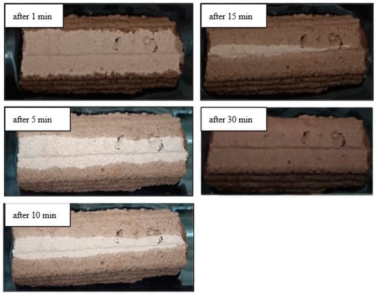Moreover, the water sorption phenomenon was analyzed by using the FLIR E96 thermal imaging camera (Teledyne FLIR, Wilsonville, OR, USA), recording photos in 5 min intervals for 120 min. This device is used for the non-contact measurement of infrared radiation emitted by object surfaces.
